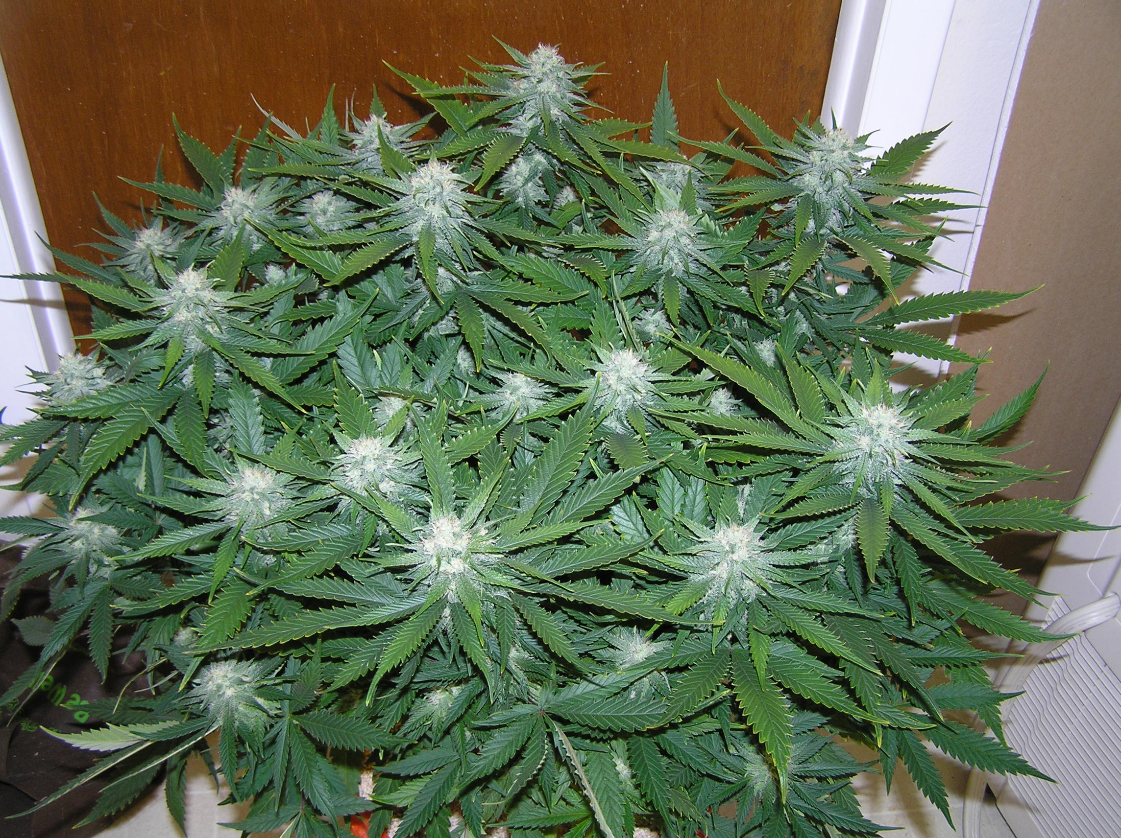 Один из моих любимых автиков. Живучий, скосил куст, случайно оторвал центральную колу, оставив первые 4 побега. Но горила справилась, дала еще 22 небольших побега и по итогу вымыхала в такой пышный куст, что если бы случайно не резанул то урожай был бы мега большим, но и так дала большем чем любой другой автоцвет) На счёт эффекта, более мощного пока еще ничего не курил, давал пробовать своим, все присели с колпака)))